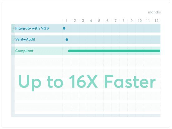 PCI Level 1 is achievable in as quick as 21 days, no matter the type of business (merchant, service provider, or other). Integrate to VGS with no changes to existing systems, and instantly begin securing, managing, and using sensitive data.